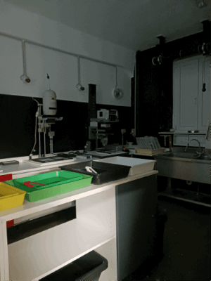 La lumière rouge est obligatoire en laboratoire car la lumière du jour et la lumière artificielle font des défauts sur le papier photo.