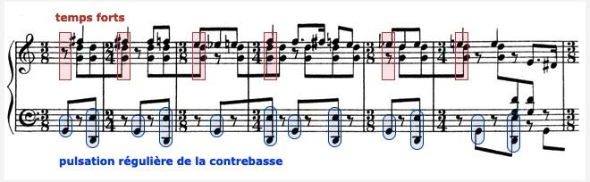 La partition elle-même refuse toute complaisance. Stravinski y déploie un kaléidoscope de motifs qui s'entrechoquent, se déforment, se superposent. Les rythmes sont désarticulés, les points d'appui constamment déplacés par des changements de mesure imprévisibles. Dans la Danse du Diable, par exemple, quatre motifs distincts se juxtaposent dans un tourbillon nerveux et grinçant. Le premier, tourmenté, surgit au basson et à la contrebasse. Le deuxième, dérivé d'un thème du Soldat, marque l'emprise démoniaque. Le troisième serpente en chromatismes, image de la perfidie. Le quatrième, joué par le violon et le basson, martèle le triton, cet intervalle sulfureux surnommé « diabolus in musica » au Moyen Âge. Stravinski fait voyager l'auditeur à travers un patchwork de styles : mélodie russe nostalgique, tango argentin, valse européenne du XIXe siècle, ragtime afro-américain. Rien n'appartient vraiment à un genre défini. C'est du théâtre musical avant que le terme n'existe, une œuvre hybride où la musique, le texte parlé, la danse et le mime dialoguent sans jamais se soumettre l'un à l'autre.