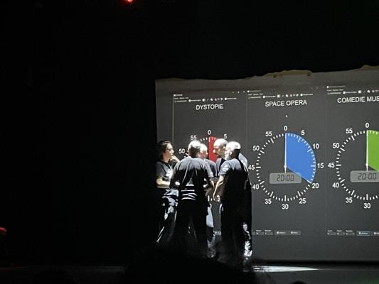 Deuxième impro : une dystopie. Le genre d’histoire où l’humain réussit à transférer sa conscience dans des machines hyper évoluées pour vivre plus longtemps. Sauf qu’à quel prix ? On parle IA, technologie qui va trop vite, éthique, performance…On suit la femme du créateur de la technologie et un sportif forcé par son manager à franchir le cap. Une impro intelligente, profonde, bien construite. Et ça finit sur une émotion très forte. Juste excellent.