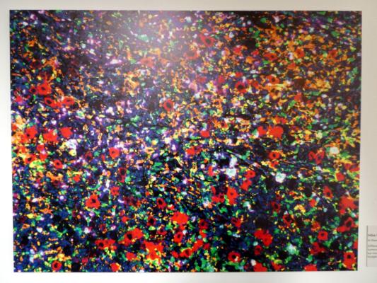 On vous invite à entrer dans le cloître des Ateliers des FUCaM afin de jeter un œil à l’expo « Sous la peau », histoire de remarquer à quel point l’art pictural et le microscope à fluorescence peuvent s’entendre comme larrons en foire.